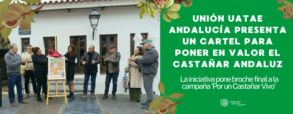 La Unión UATAE Andalucía ha participado en una nueva iniciativa para poner en valor y visibilizar el papel de la castañicultura en Andalucía y la labor de las personas trabajadoras autónomas que participan en este cultivo. En esta ocasión, se ha tratado de la presentación de un cartel que incluye fotografías del colorido estético y el atractivo ambiental y turístico del castañar en el Parque Natural Sierra de Aracena y Picos de Aroche (Huelva). La Organización ha sufragado esta actividad, que forma parte de la campaña ‘Por un Castañar Vivo’, lanzada en la comarca por parte de diversas entidades. La más importante es la Plataforma Onubense de Defensa del Castañar, integrada en la Plataforma Andaluza del Castaño junto con el sector malagueño.